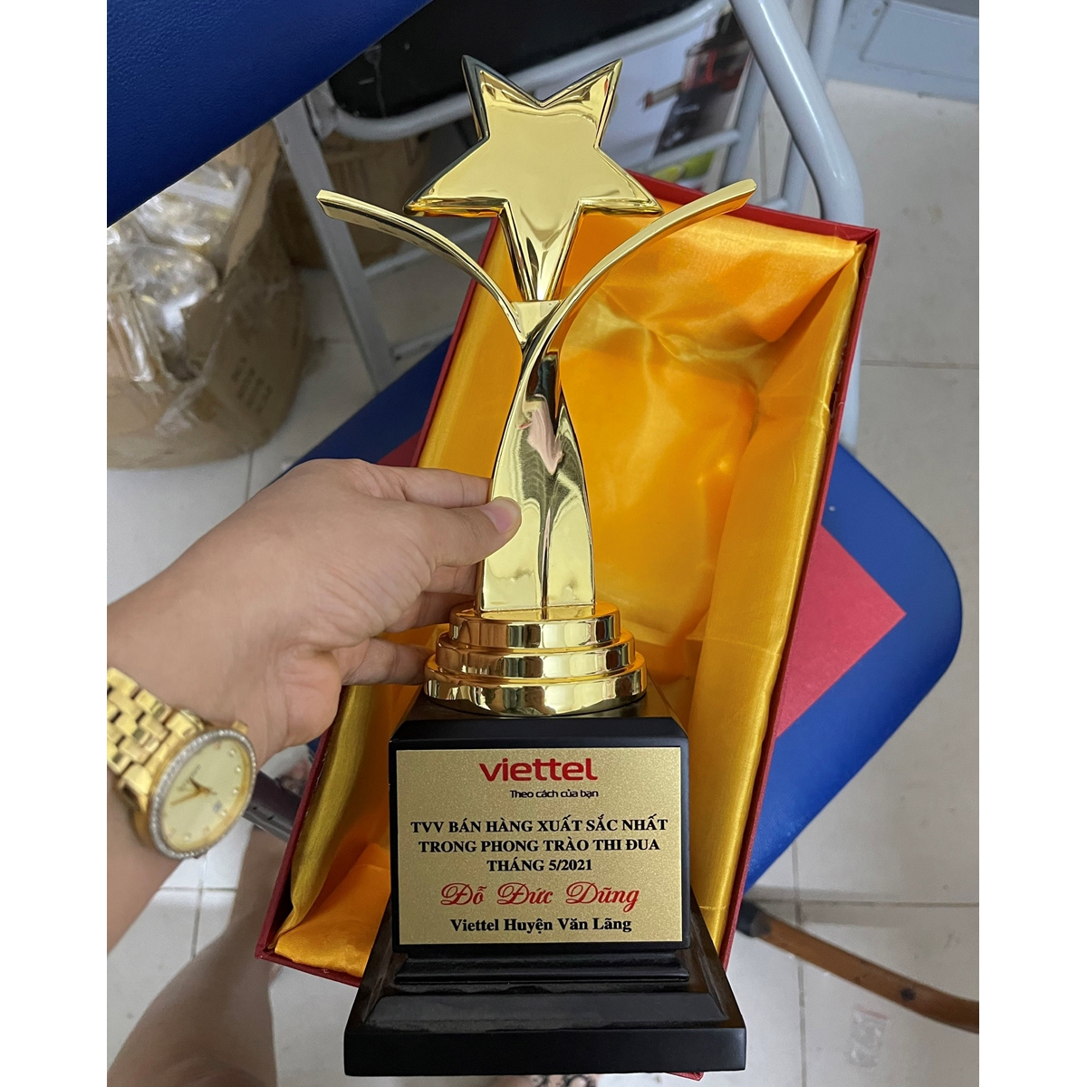 Giá in: 50.000đ/1c (gồm chi phí thiết kế + in mác kim loại gắn lên chân cúp)