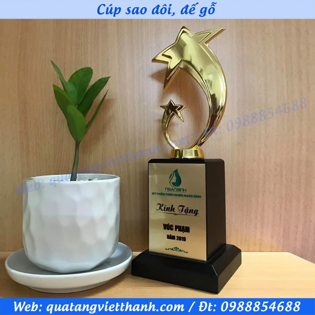 Tên sản phẩm: Cúp kim loại sao đôi đế gỗ