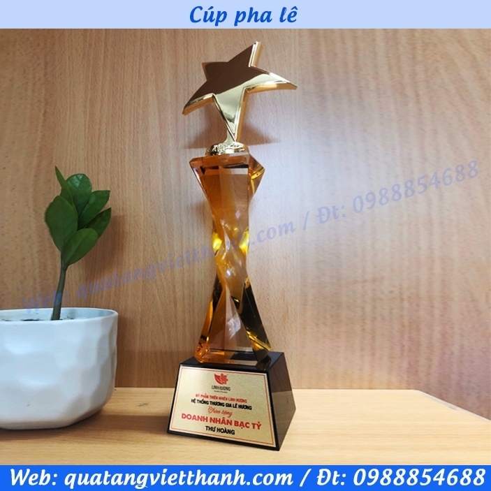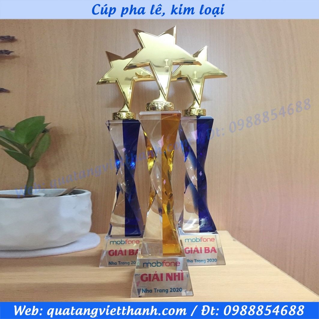 Tên sản phẩm: Cúp pha lê kim loại mẫu sao thân vàng