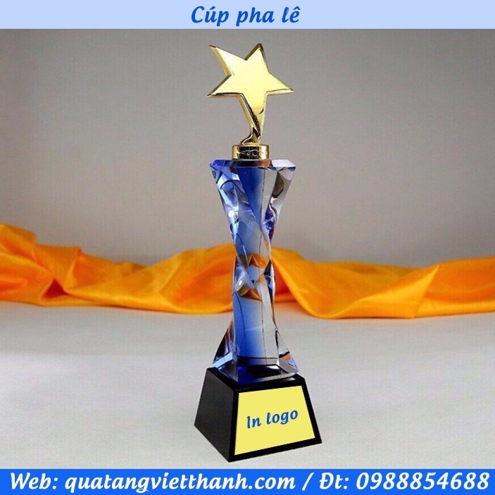 Tên sản phẩm: Cúp pha lê kim loại mẫu sao thân xanh