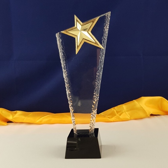 Tên sản phẩm: Cúp pha lê kim loại mẫu vát đế đen + sao